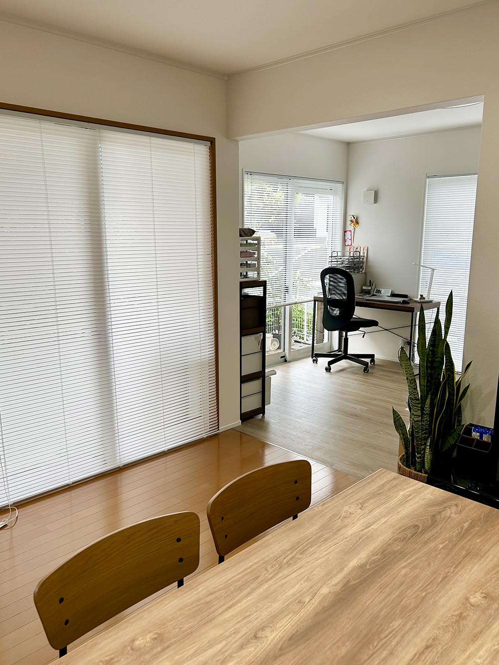 リビングから続きの和室を洋間にかえて書斎にしました。