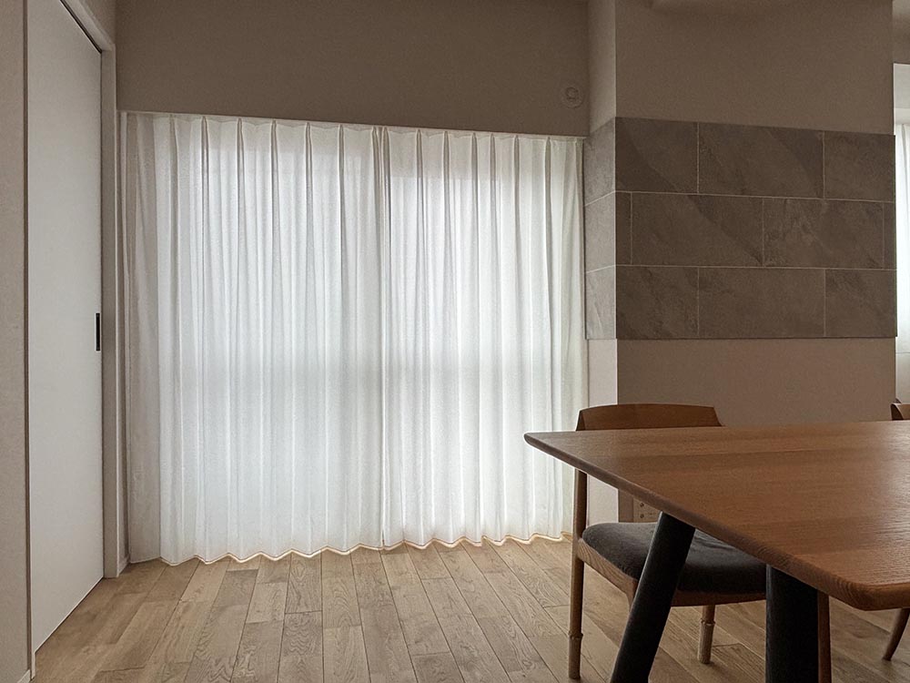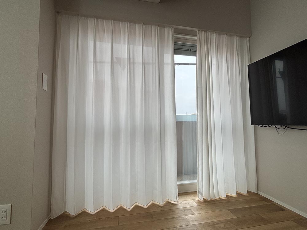 カーテンを閉めると景色は見えなくなりますが光を通すので部屋の中がより明るく感じます。
