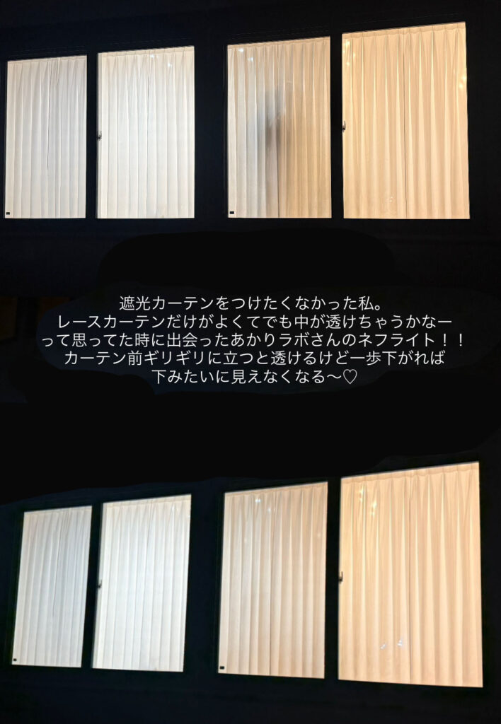 日中は柔らかい日差しを入れながら夜もほとんど透けないのがとてもよかったです!