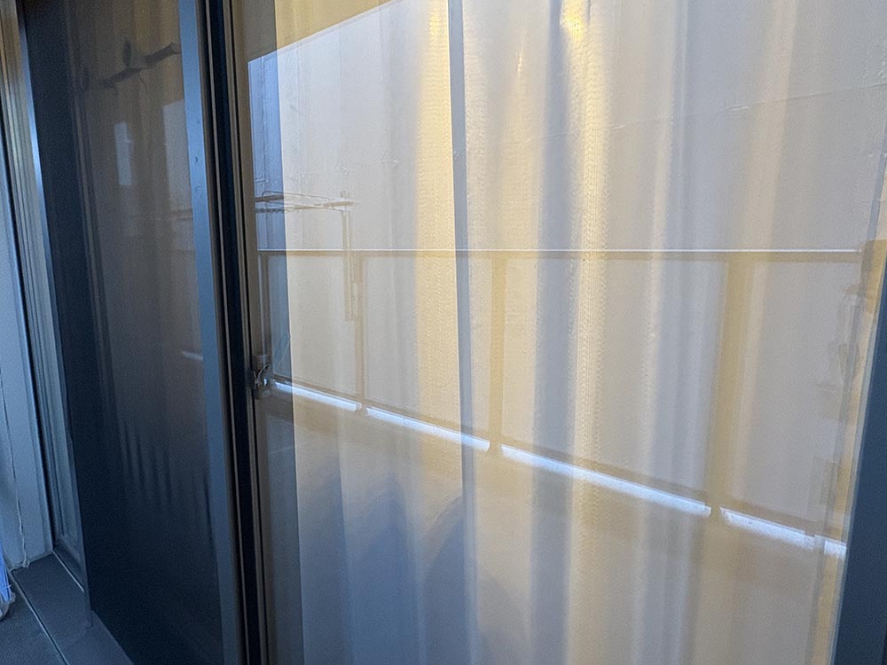 レースのような透け感はない為、日中は以前より開放感は減少しましたが、夜間もカーテンを重ねる事なくこちらの一枚だけで視界を気にせず過ごせます。