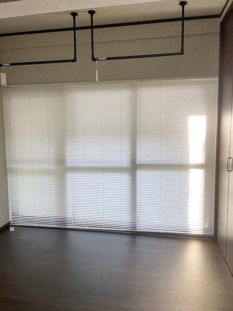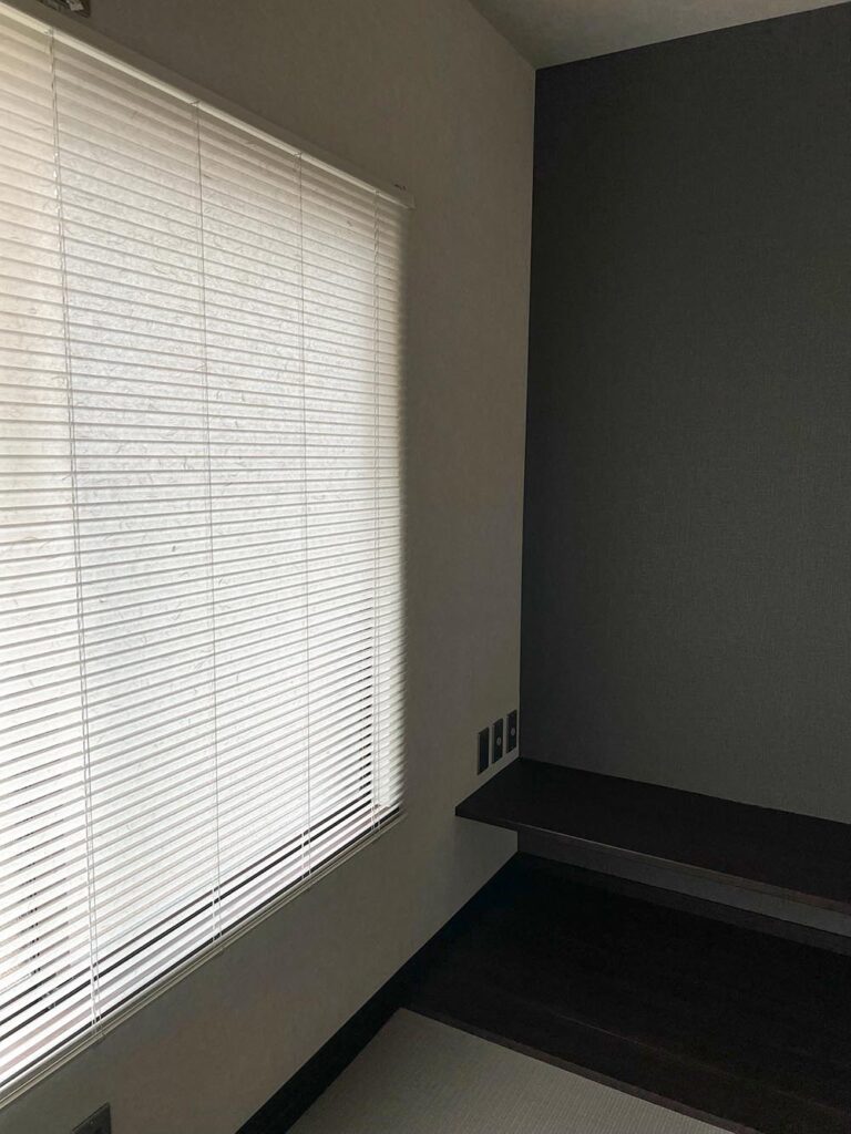 取り付け後いろんな時間帯で確認しましたが、ブラインドを閉じていても開いているときとあまり部屋の明るさが変わらず、ほどよく外光が和らいで、特に和室のキナリは端から漏れる光も含めて素敵な雰囲気になりました。