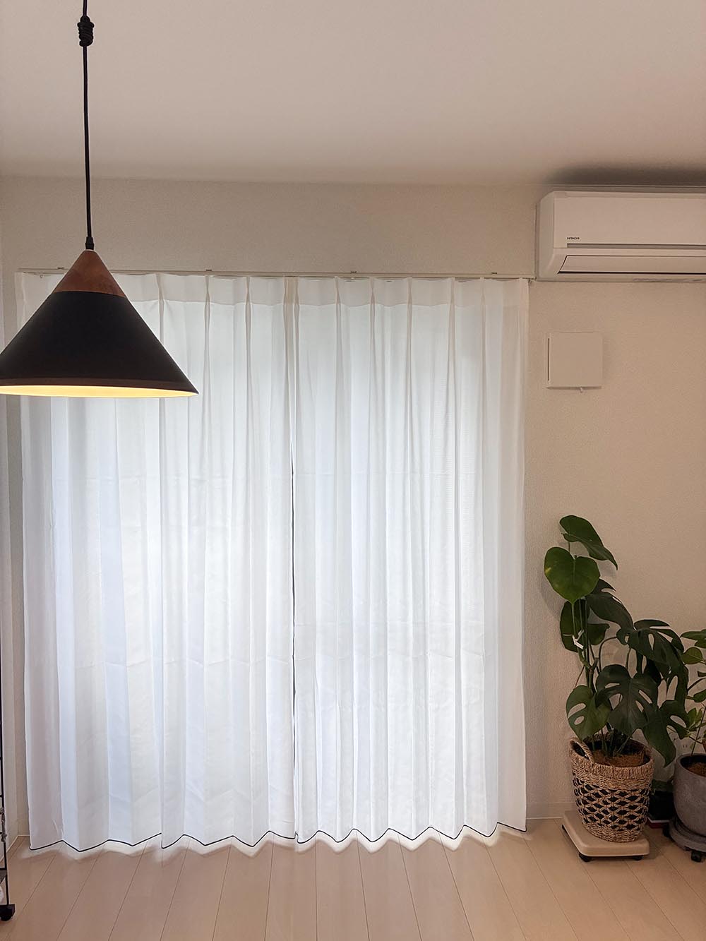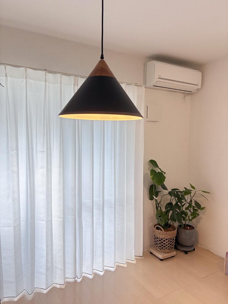 可愛らしさと引き締め効果があり、チェーンウェイトが印象的ながらもお部屋に馴染みます!特に、風が吹いた時に靡く様子が気に入っています!通常の白のチェーンウェイトを使用していましたが、黒のチェーンウェイトに変えて垢抜け感が出ました。