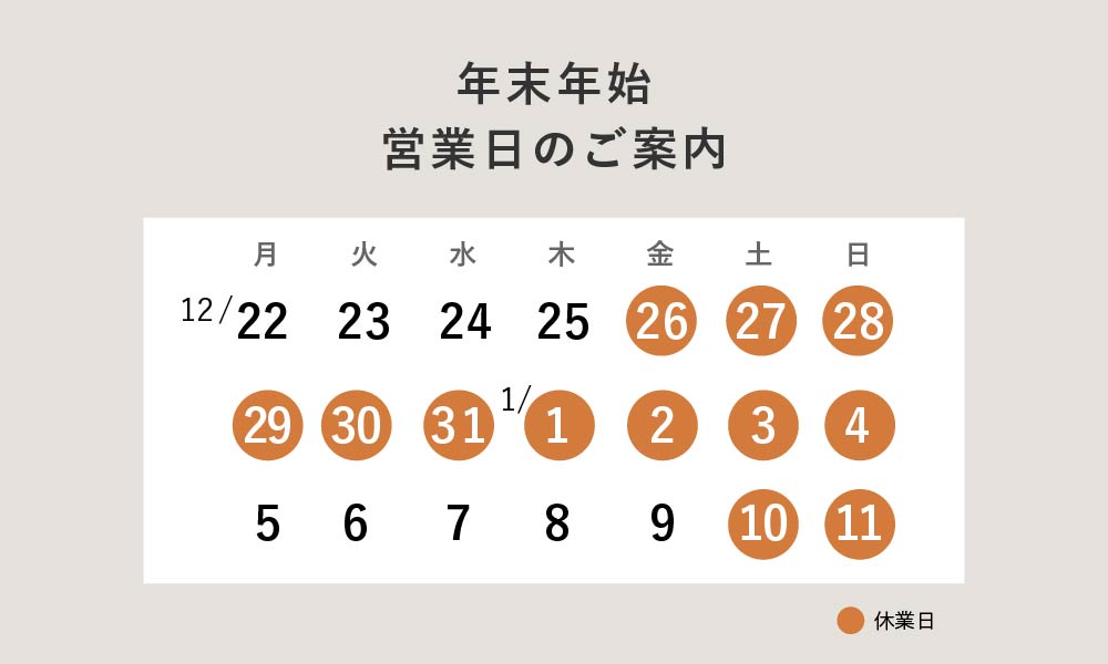 【お知らせ】年末年始休業と年内お届けのスケジュール