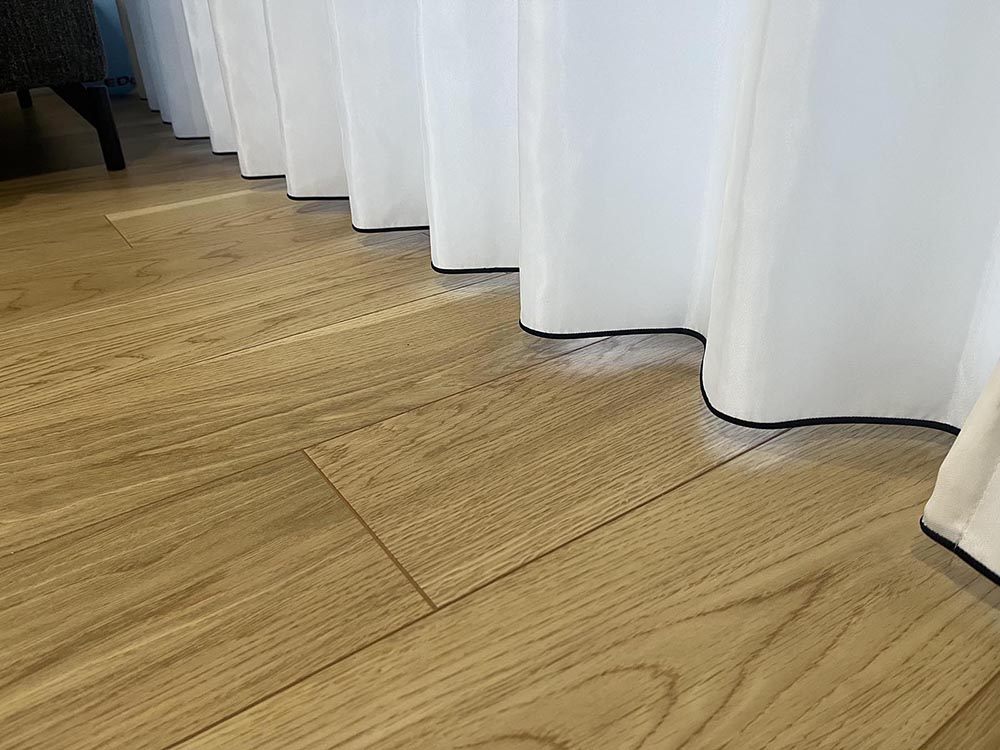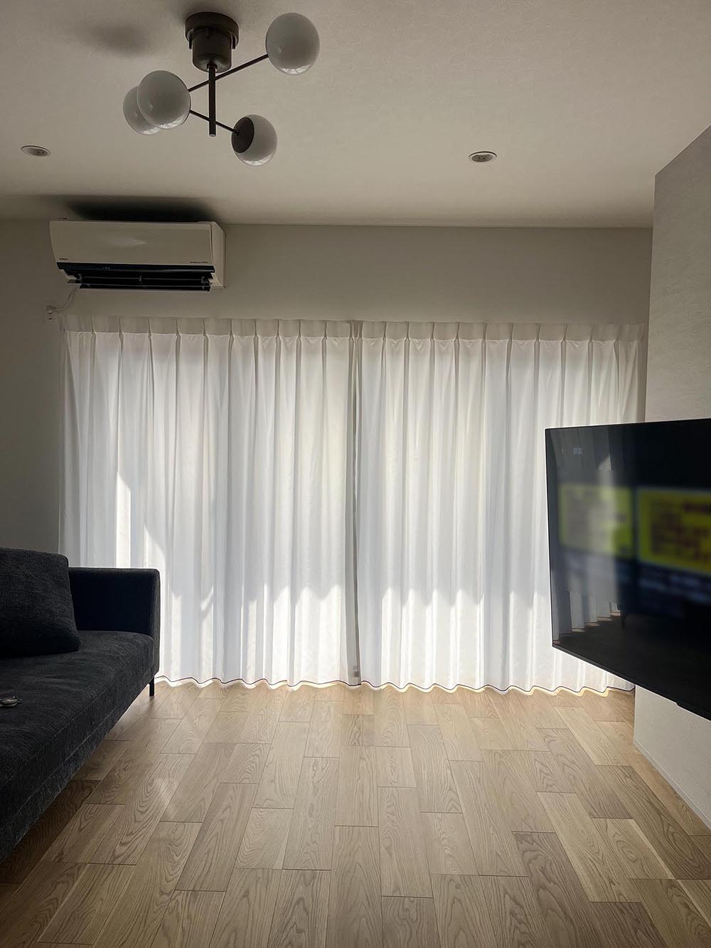 今回はリビングの掃き出し窓ということで初めて サイズオーダーand カーテンの下にアクセントを入れてみました。