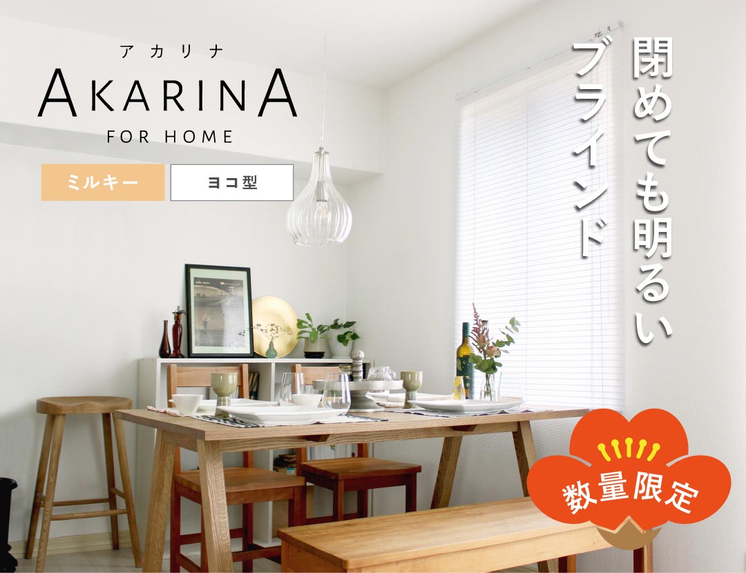 アカリナシリーズで最も明るい「ミルキー」をご用意しました。 ブラインドを閉めたままでも、外の光の約62%を採り込み、質のよい、柔らかく優しい光がお部屋の奥まで均等に広がり明るく保ちます。また、閉めたままでも明るいので、プライバシーを守りながら安心して快適に暮らせます。