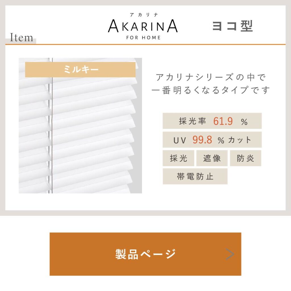 そんなmaruさんのご自宅へ、採光ブラインドアカリナ for homeの最も明るくなるタイプ「ミルキー」を迎え入れていただきました。