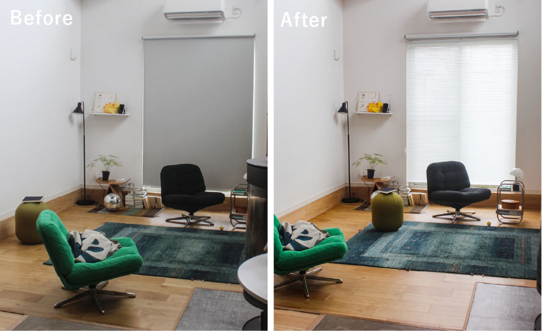 これまではロールスクリーンを閉めると部屋が暗くなり、開けると今度は外から室内が見えてしまう――そんなお悩みを抱えていらっしゃいました。