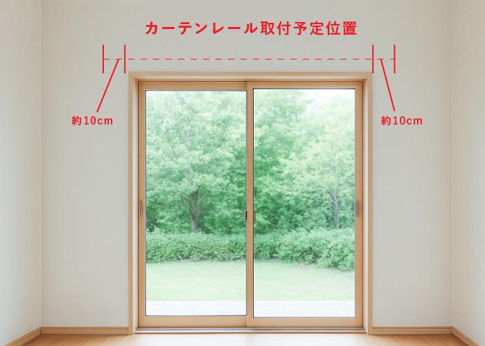窓よりも大き目にレールを取付けるので、窓周りにスペースがない場合はその分カーテンレールの長さを短くしてください。