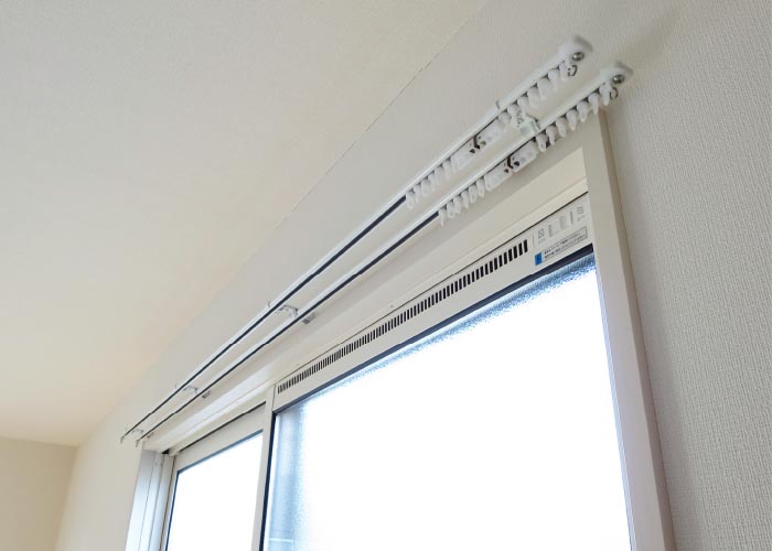 カーテンレールは、壁や窓枠に直接ビスで取付けます。レールを取付ける部分に、ビスがしっかりと留まる下地があるかどうか確認が必要です。