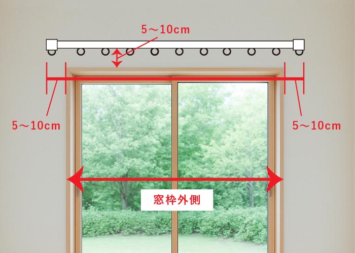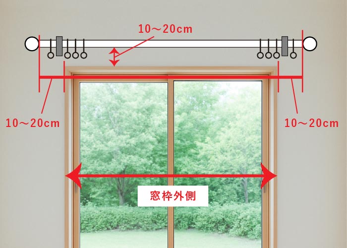 装飾レールの場合:窓枠外寸+20~40㎝(左右各10~20㎝ずつ)