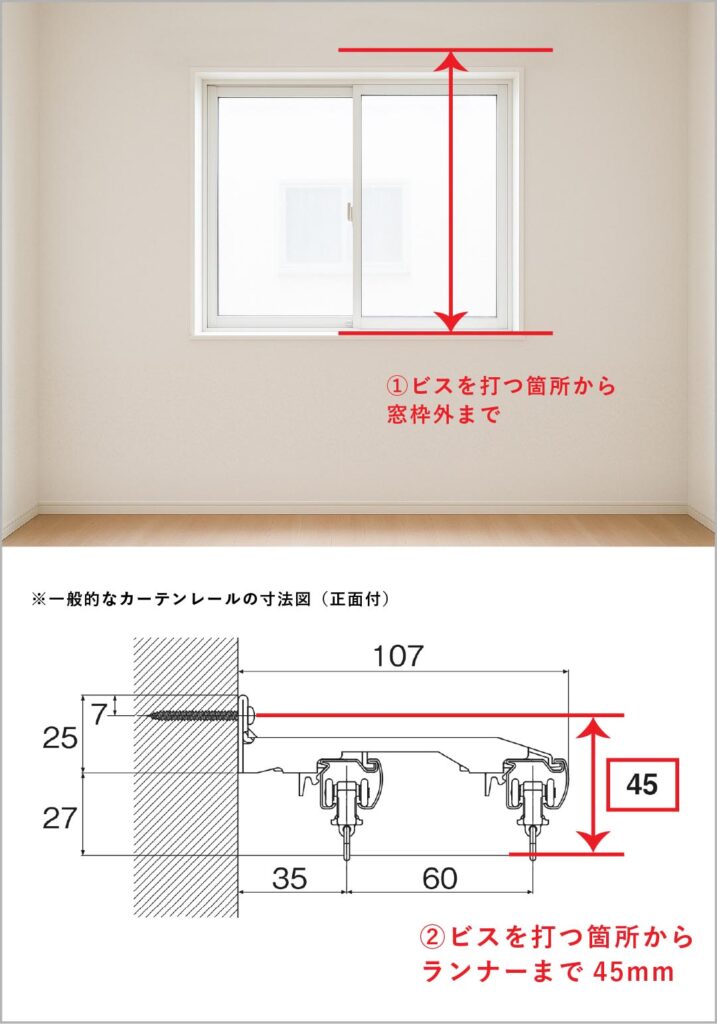 2.カーテンレール取付位置の確認